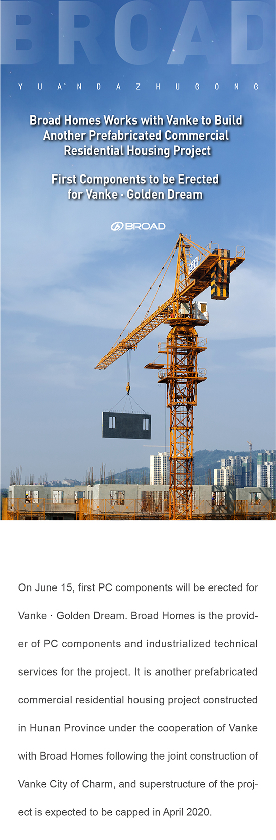 Broad Homes Works with Vanke to Build Another Prefabricated Commercial Residential Housing Project First Components to be Erected for Vanke · Golden Dream